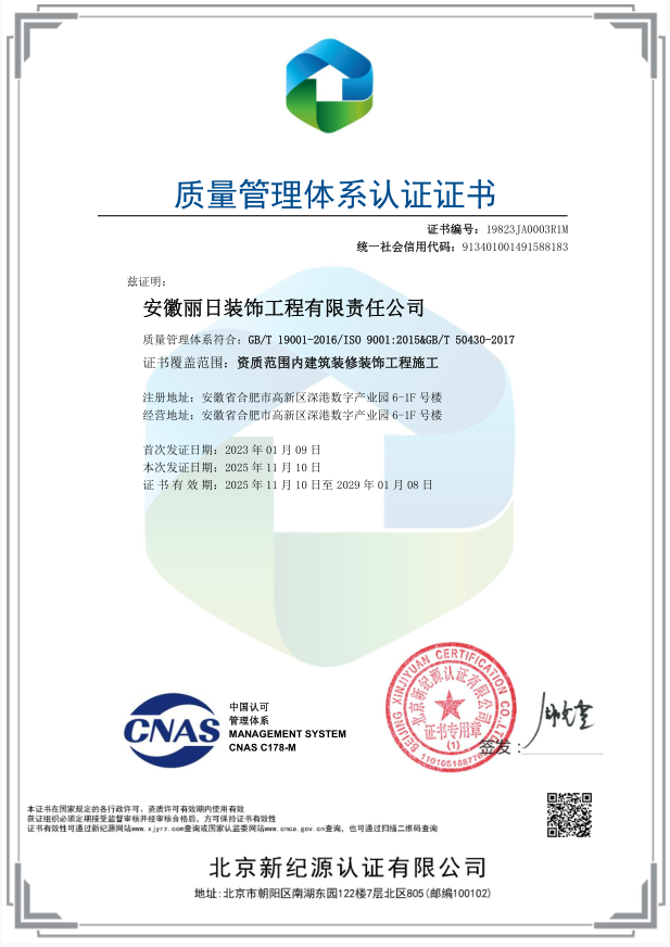 ISO质量管理体系认证证书