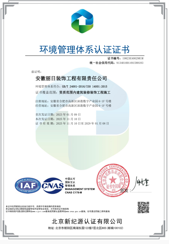 ISO环境管理体系认证证书